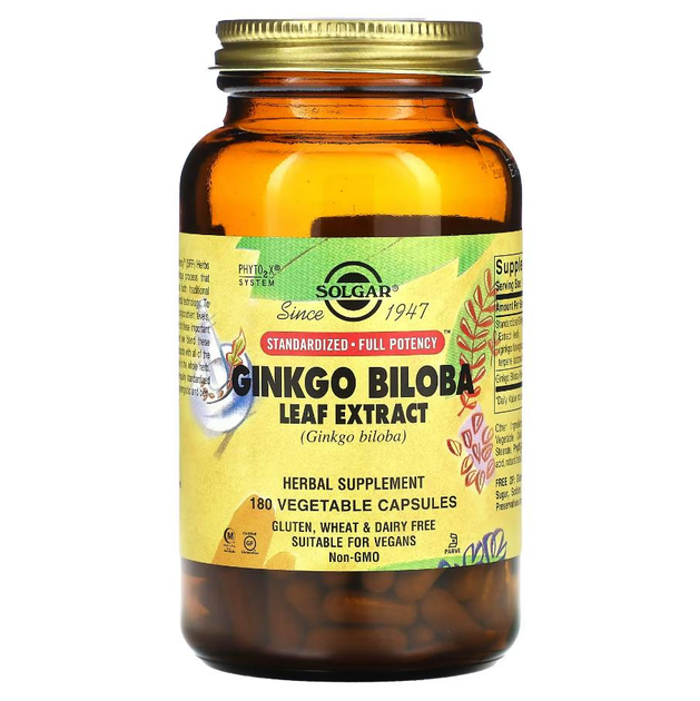 Натуральна добавка Solgar Ginkgo Biloba Leaf Extract Standardized Full Potency, 180 вегакапсул