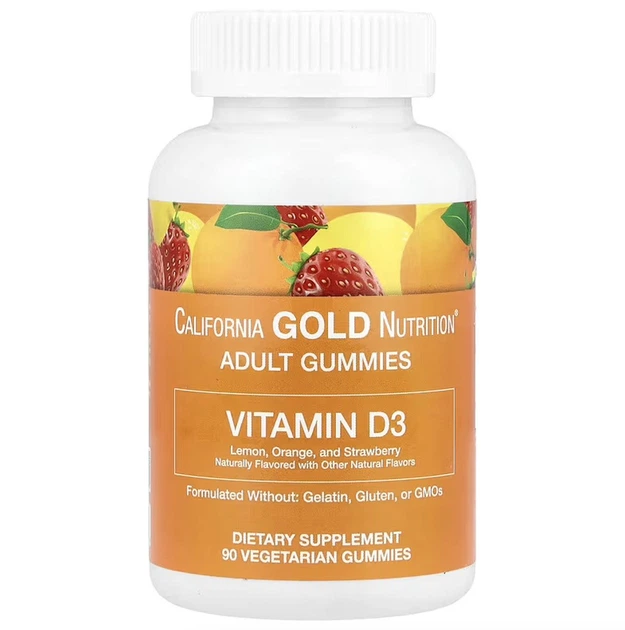 Вітамін D3, California Gold Nutrition, зі смаком лимона, апельсина та полуниці, 2000 МО, 90 жувальних таблеток