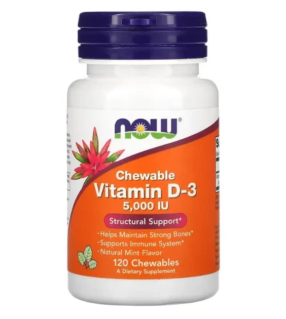 Вітамін Д3 Now Foods (Chewable Vitamin D-3) 5000 МО 120 жувальних таблеток