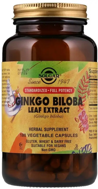 Екстракт листя Гінкго Білоба Solgar Ginkgo Biloba 180 капсул в упаковці (ARE-573358)