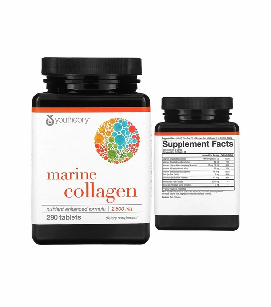 Морський колаген Youtheory 2500 мг 290 таблеток 500 мг у таблетці шкіри суглобів волосся нігтів м'язів комплекс (85324400314