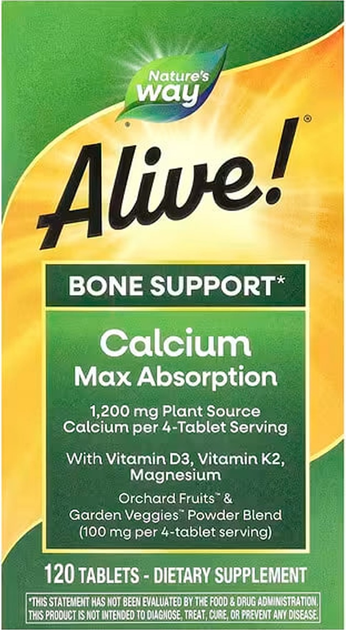 Кальцій Д3 К2 та магній Alive! Calcium Max Absorption Nature's Way Alive! зміцнення кісток максимальне засвоєння 120 вегетар