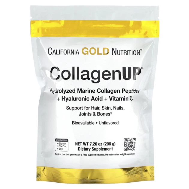Морський колаген-пептид California GOLD Nutrition, CollagenUP 5000 mg, з гіалуронкою та вітаміном C, 206 г (709488)