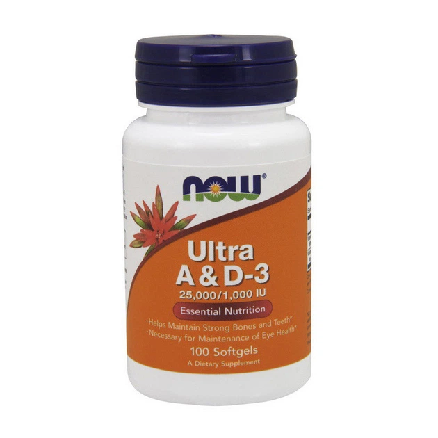 Вітаміни та мінерали Ultra A&D-3 25000/1000 IU, 100 капсул NOW 000290018