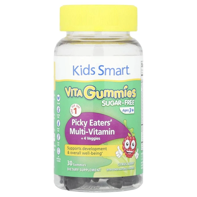 Мультивітаміни + 4 овочі Kids Smart для дітей віком від 3 років цитрусові 30 жувальних таблеток