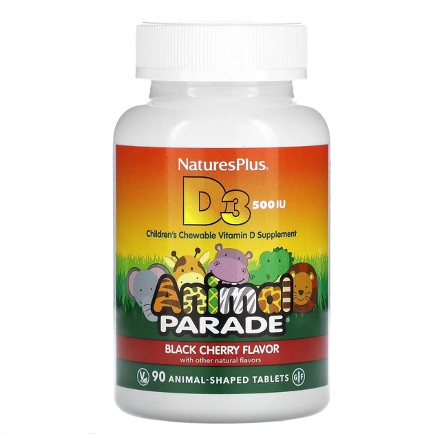 Вітамін D3 для дітей Nature's Plus Animal Parade D3, 500 МО, 90 жувальних таблеток (2022-10-2853)
