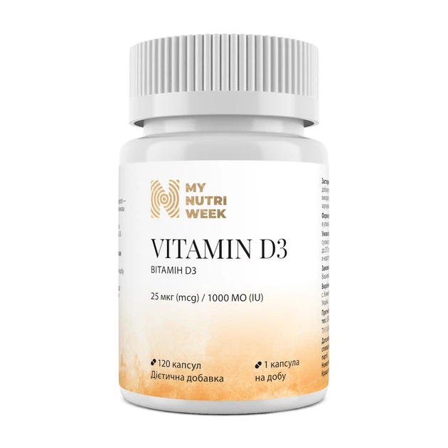 Вітамін D3, Vitamin D3, My Nutri Week, 25 мкг (1000 МО), 120 капсул