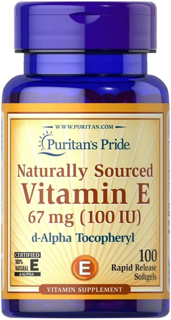 Вітамін Е Puritan’s Pride Natural Vitamin E 67 мг (100 МО) 100 натурального походження, 100 гелевих капсул (PTP-10260)