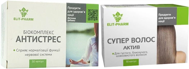 Набір Антистрес Біокомплекс натуральна добавка №50 капсул (4820060421562) + Супер Волос Актив капсули №50 натуральна добавка