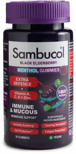 Sambucol Extra Defence Menthol Gummies Самбукол Екстра захист від 12 років желейки 30 шт