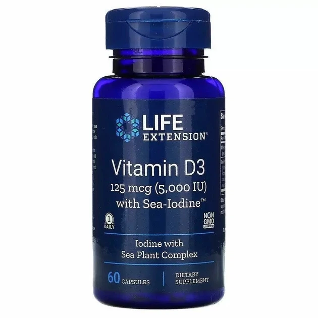 Вітамін Д3 з морським йодом, Vitamin D3 with Sea-Iodine, Life Extension, 5000 МО, 60 капсул