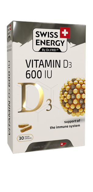 Вітамін D3 для імунітету, D3 600 IU, Swiss Energy, 15 мкг (600 МО), 30 веганських капсул