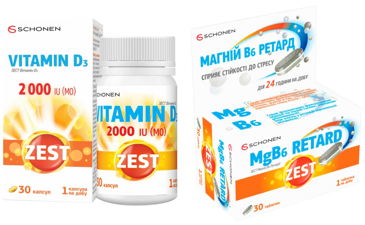 Набір вітамінів та мінералів Zest Віт Д3 2000 МО желатинові капсули №30 (7640158264133) + Вітаміни Zest MgB6 Ретард 30 табле