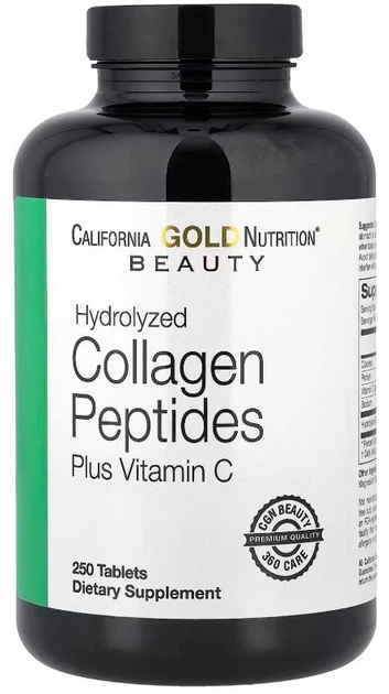 Колаген + Вітамін З, California Gold Nutrition, Тип 1 і 3, Hydrolyzed Collagen Peptides + Vitamin C, 250 таблеток