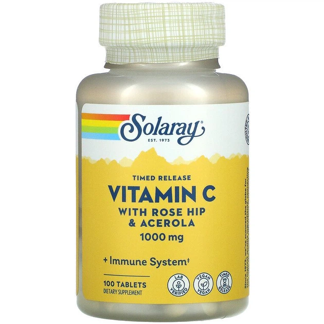 Витамин С, SOLARAY "Vitamin C" длительного высвобождения, 1000 мг (100 таблеток)
