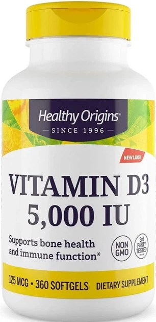 Вітамін Д3 Healthy Origins Vitamin D3 5000 МЕ 360 капс в упаковці (ARE-575455)