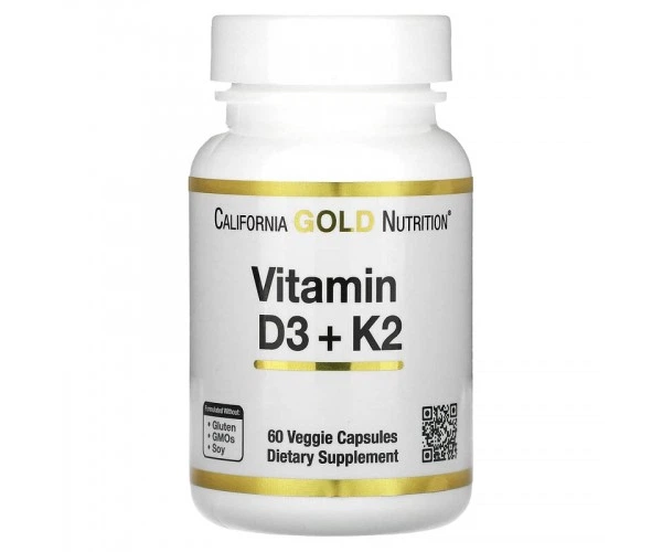 Вітаміни California Gold Nutrition Вітамін D3+K2 Vitamin D3+K2 60 вегетаріанських капсу(33675711)