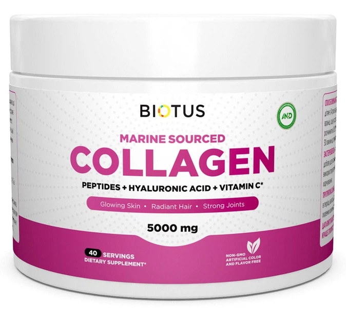 Морський колаген з гіалуроновою кислотою та витамином С, Biotus, 5000 мг, 206 г (BIO-530128)