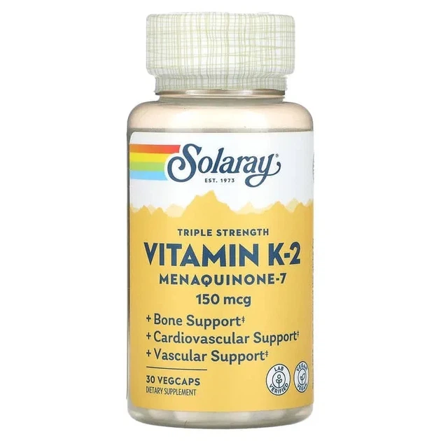 Вітамін К-2, менахінон-7 потрійної сили Vitamin K-2 Menaquinine-7 150 мкг, Solaray, 30 капсул