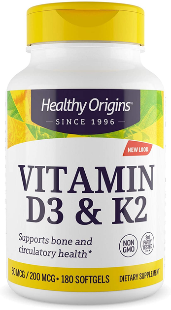 Вітамін D3 і К2, Vitamin D3 + K2, Healthy Origins, 180 гелевих капсул