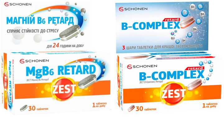 Набір вітамінів Zest MgB6 Ретард 30 таблеток (000000924) + Комплекс Zest В Ретард №30 (7640158264645)