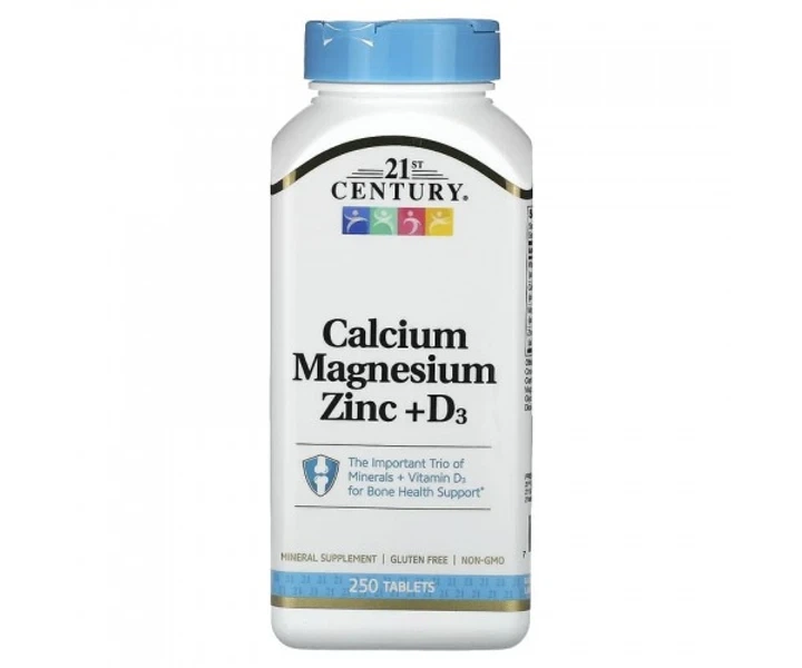 Кальцій Магній Цинк + D3, Calcium Magnesium Zinc + D3, 21st Century, 250 таблеток