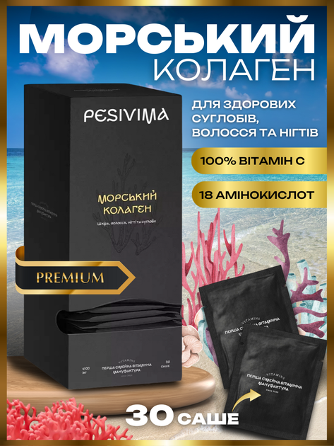 Морський колаген із вітаміном С Pesivima Франція 4100 мг натуральна біологічно активна добавка колагенові пептиди для суглоб