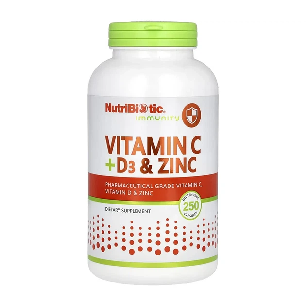 Комплекс для імунітету Vitamin C + D3 & Zinc Nutribiotic, 250 капсул