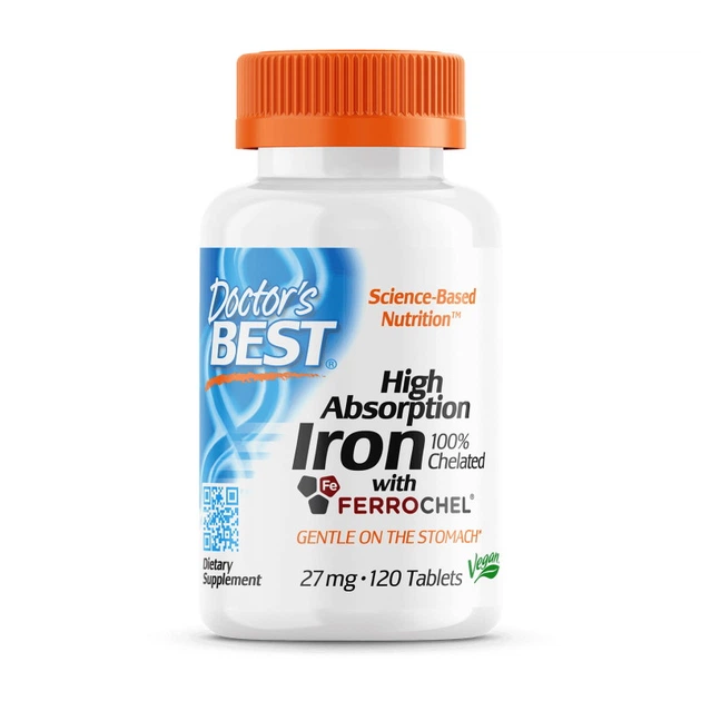 Вітаміни та мінерали Doctor's Best Iron 27 mg High Absorption, 120 таблеток