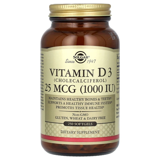 Дієтична добавка SOLGAR Натуральний вітамін D3 25 мкг / 1000 МО – підтримка кісток та імунітету / SOLGAR Natural Vitamin D3