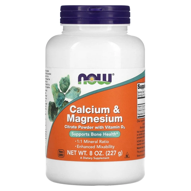 Вітаміни та мінерали NOW Calcium & Magnesium Citrate Powder with D3, 227 грам