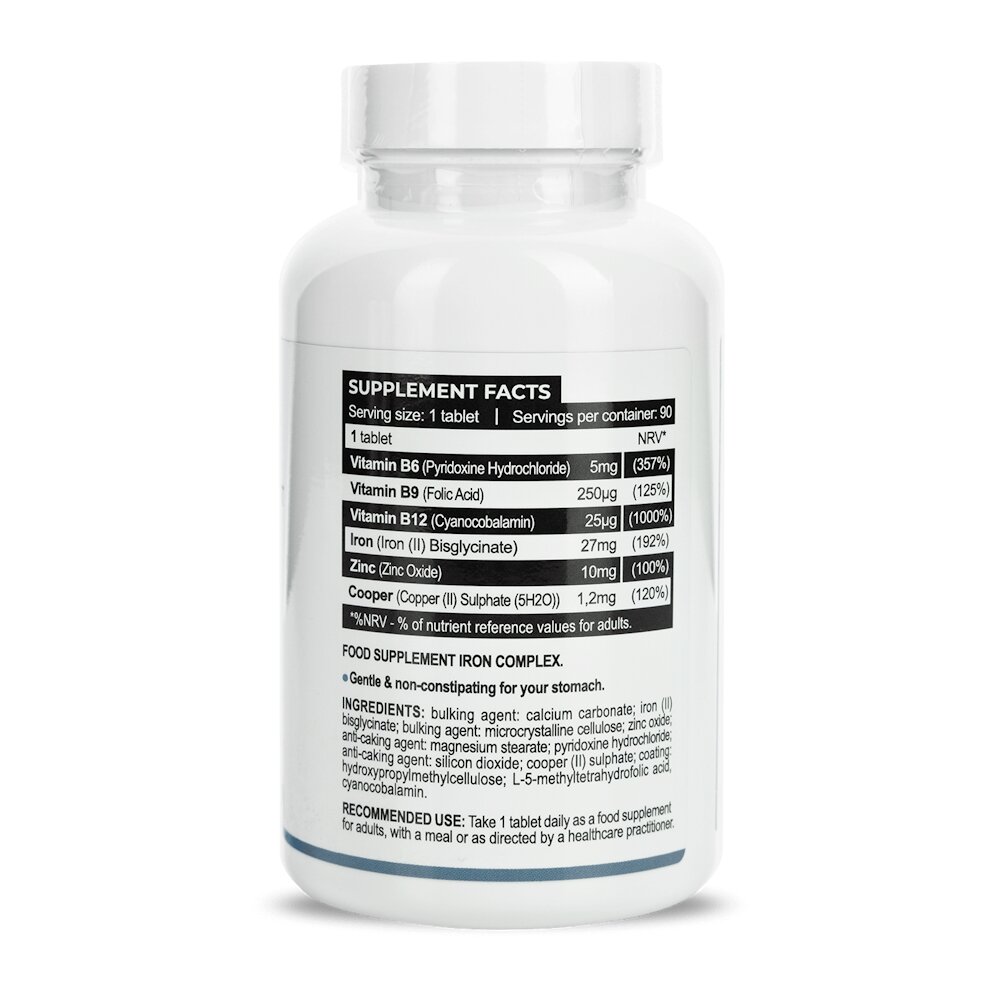Progress Nutrition Iron Complex – ефективний продукт, який допоможе не лише покращити здоров'я, а й уникнути анемії. Містить залізо, цинк, вітаміни B6 та B9, мідь. Каталізує безліч важливих біохімічних реакцій в організмі, забезпечує органи кровоносної системи киснем. Підтримує вироблення еритроцитів та підвищує енергетичний потенціал людини. Допомагає впоратися з млявістю, занепадом сил та