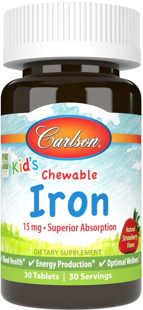 Вітаміни та мінерали Carlson Labs Kid's Chewable Iron, 30 таблеток Полуниця