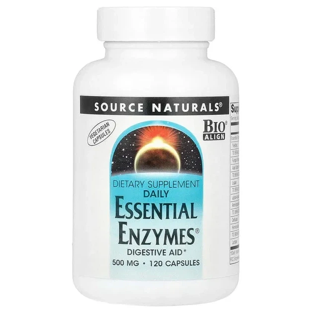Ефірні Ензими, 500 мг, Daily Essential Enzymes, Source Naturals, 120 капсул