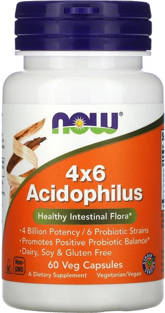 Пробіотики 4x6 Acidophilus Now Foods 60 рослинних капсул (NOW-02920)
