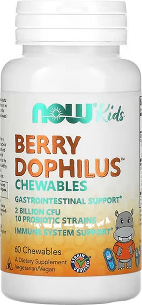 Пробіотики для дітей Berry Dophilus Now Foods смак ягід 2 млрд КУО 60 жувальних таблеток (NOW-02936)