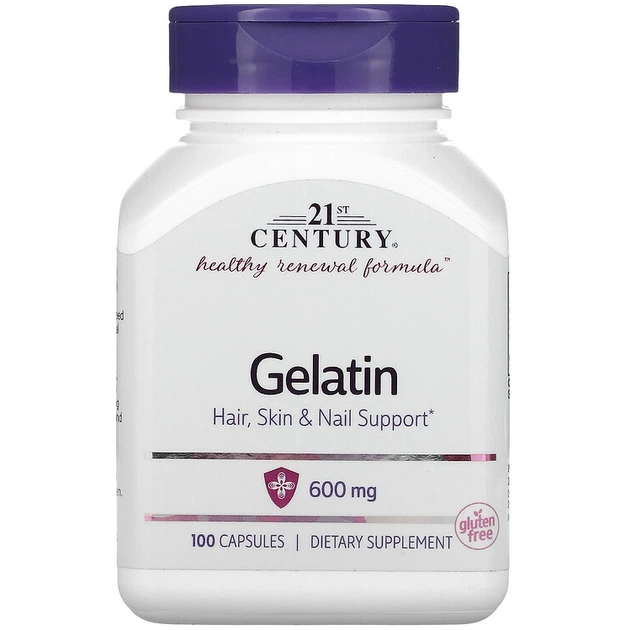 Желатин 21st Century "Gelatin" для волосся, шкіри та нігтів, 600 мг (100 капсул)