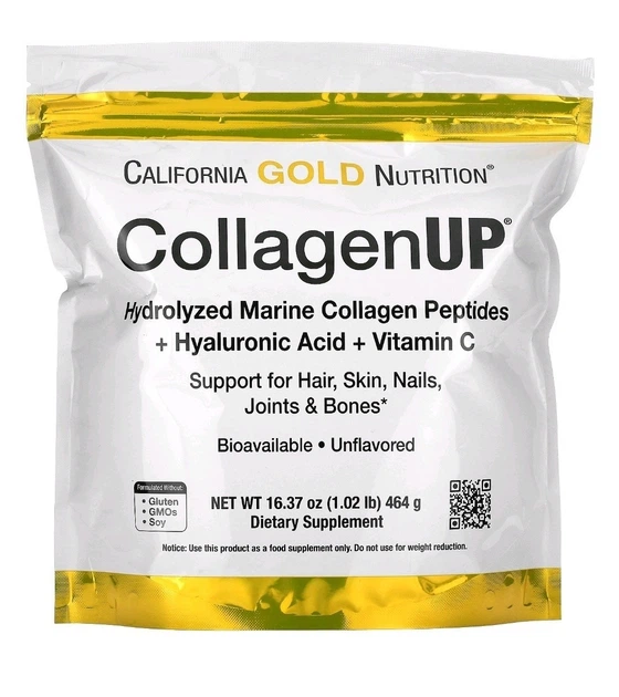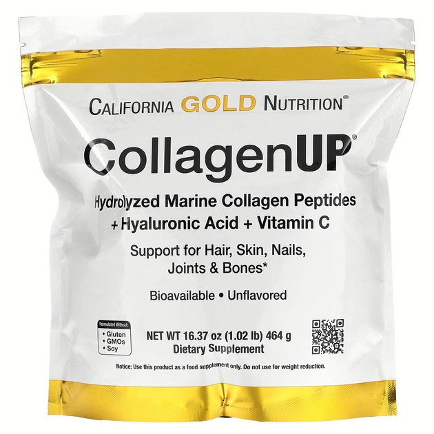 Колаген California Gold Nutrition Collagen UP з гіалуроновою кислотою та вітаміном C морський гідролізовані пептиди 464 г