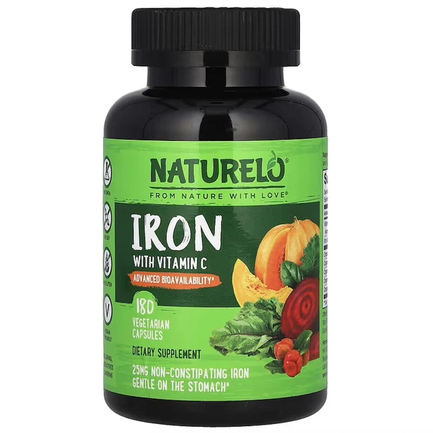 Залізо з вітаміном C, NATURELO, 180 вегетаріанських капсул