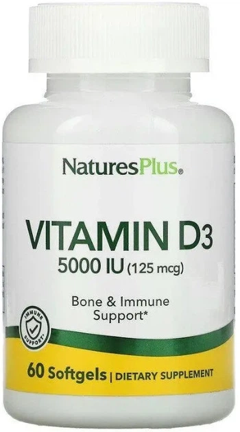 Вітамін D3 холикальциферол Nature's Plus Vitamin D3 125 мкг (5000 МЕ) 60 гел капс в упаковці (ARE-575541)