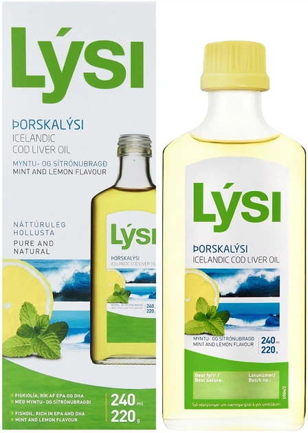 Омега-3 з печінки тріски LYSI з вітамінами A, Д3, E, риб'ячий жир зі смаком лимона та м'яти 240 мл (НС570)