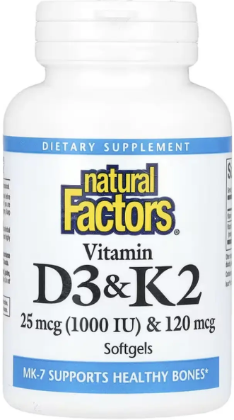 Вітаміни D3 і K2 Natural Factors Vitamin D3 & K2 25 mcg (1000 IU) & 120 mcg 120 капсул