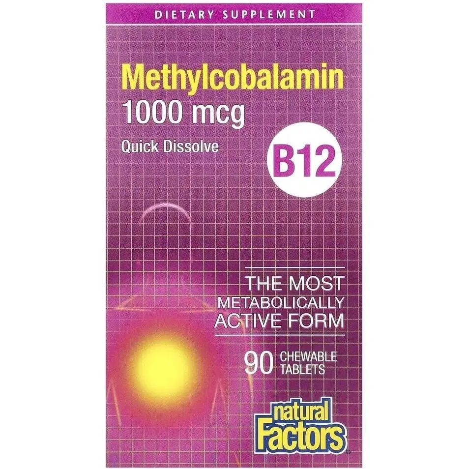 Вітамін B12 Natural Factors Methylcobalamin 1000 mcg, 90 жувальних таблеток для підтримка нервової системи