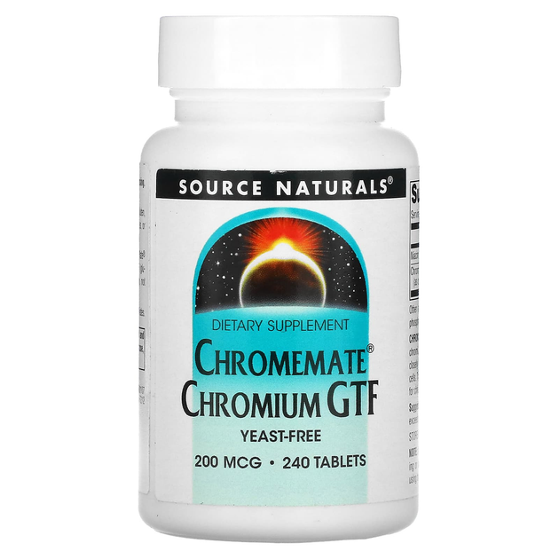 Хром, Chromemate Chromium GTF, Source Naturals, 200 мкг, 240 таб.