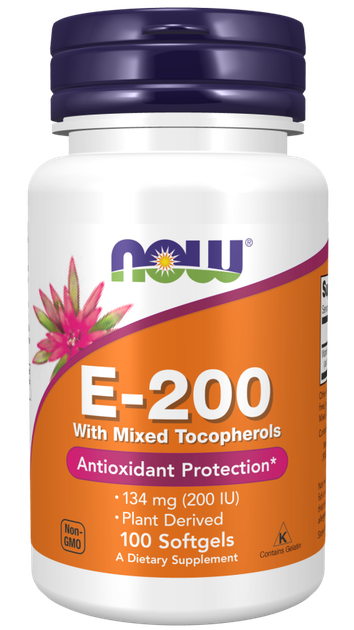 Вітамін Е Now Foods зі змішаними токоферолами E-200 134 мг (200 МО), 100 гелевих капсул (NOW-00880)