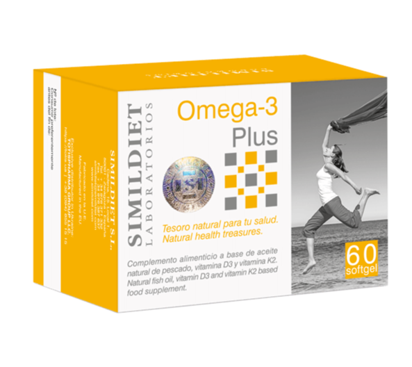 Simildiet Omega-3 Plus, нутрицевтик з Омега-3 і вітамінами E, D3 та K2, 60 капсул
