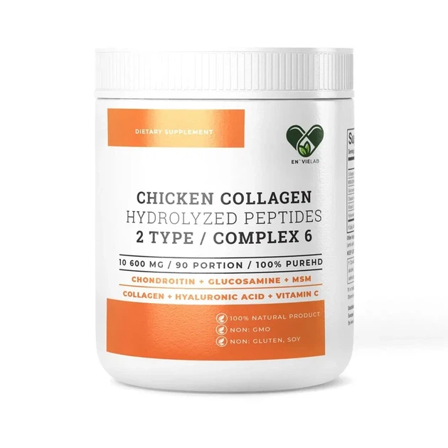 Колаген 2 типу з глюкозаміном, хондроїтином, гіалуроновою кислотою, МСМ і вітаміном С, 90 порцій/COMPLEX 6