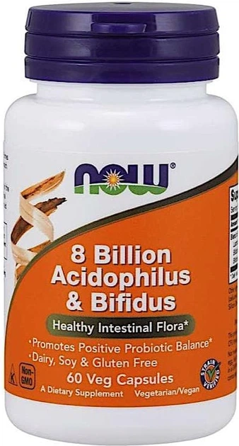 Пробіотик Acidophilus & Bifidus Now Foods 8 млрд КУО 60 вегетаріанських капсул (NOW-02930)