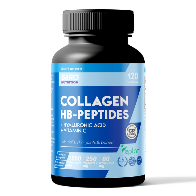 Коллаген пептидний Garo Nutrition 1 та 3 типу з гіалуроновою кислотою з вітаміном С для волосся нігтів та суглобів 120 капсу