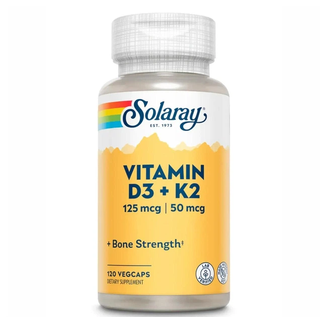 Вітамін Д3+К2 Solaray Vitamin D-3+K-2, 120 капсул (2022-10-1038)